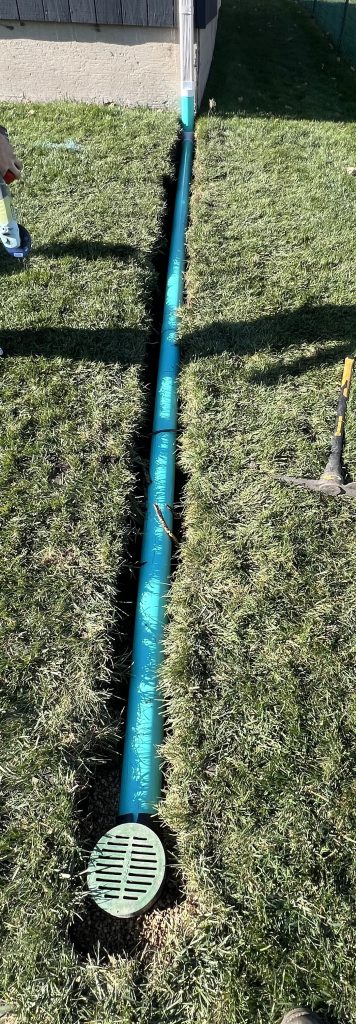 Before we close everything up, we test the system by running water through it to verify flow rate, slope, and discharge. Once confirmed, we finish the restoration — regrading any disturbed areas, replacing sod, reseeding, and cleaning the site. When we leave, the system is working and your yard looks like we were never there.